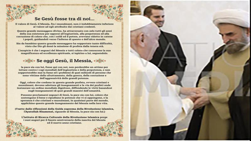 Тегеран, 4 янв. – Главе римско-католической церкви подарили грамоту с отрывком выступления великого лидера Исламской революции о Пророке Иисусе (мир ему!).