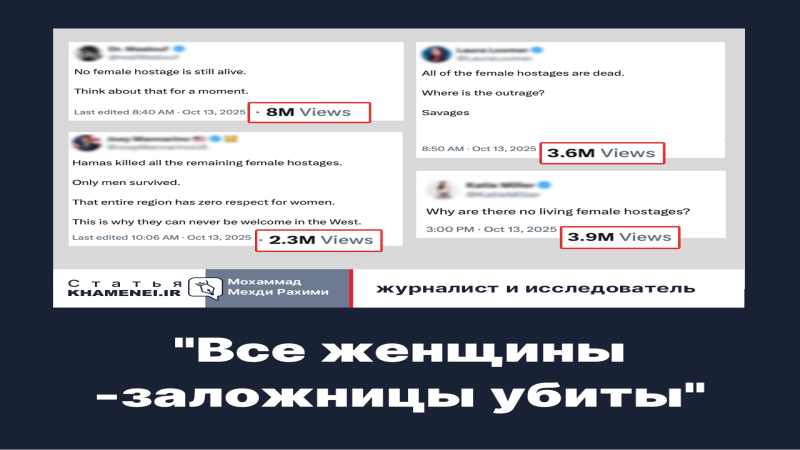 Похоже, что новое поле битвы, которое сионисты откроют перед собой, — это поле битвы общественного мнения в киберпространстве. Для этого платформа TikTok, которая оказывает большое влияние на формирование общественной культуры и мнений американской молодежи, была продана при прямом вмешательстве правительства США инвесторам, поддерживающим Израиль, и они также открыто заявили о необходимости внедрения контента, поддерживающего Израиль. Нетаньяху прямо говорил о необходимости использования социальных сетей, таких как X, в качестве оружия, и эта недавняя кампания по распространению лжи о женщинах-пленницах также свидетельствует о начале использования этого оружия.
