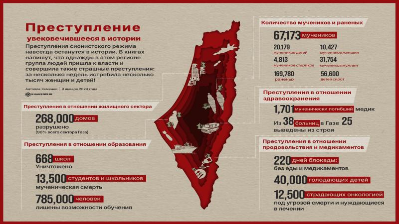 Преступления сионистского режима навсегда останутся в истории. В книгах напишут, что однажды в этом регионе группа людей пришла к власти и совершила такие страшные преступления: за несколько недель истребила несколько тысяч женщин и детей! 9 января 2024 года