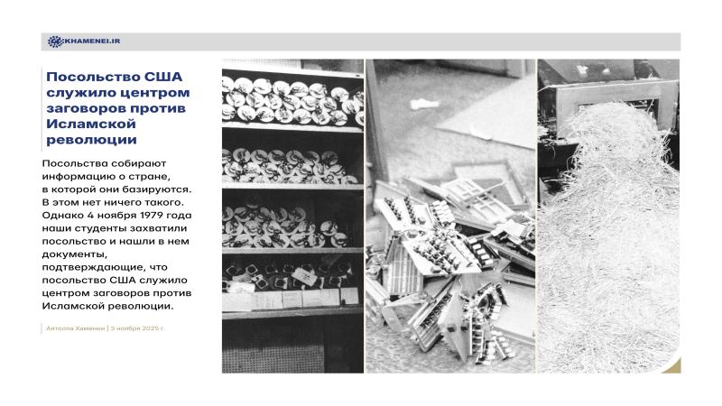 Посольства собирают информацию о стране, в которой они базируются. В этом нет ничего такого. Однако 4 ноября 1979 года наши студенты захватили посольство и нашли в нем документы, подтверждающие, что посольство США служило центром заговоров против Исламской революции.