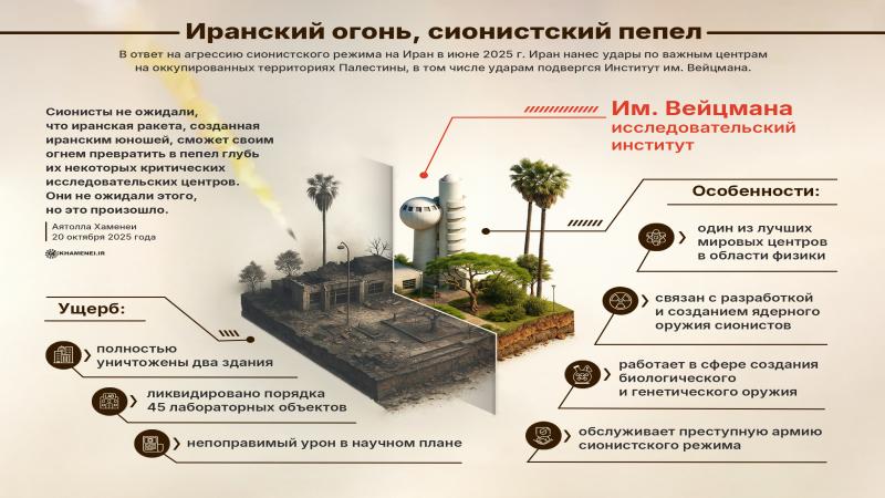 В ответ на агрессию сионистского режима на Иран в июне 2025 г. Иран нанес удары по важным центрам на оккупированных территориях Палестины, в том числе ударам подвергся Институт им. Вейцмана.