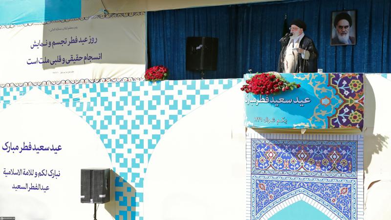 Я поздравляю всех вас, дорогих братьев и сестер совершающих намаз, а также весь великий иранский народ, все мусульманские народы и великую исламскую умму во всем мире с благословенным праздником разговения Ид аль-Фитр.